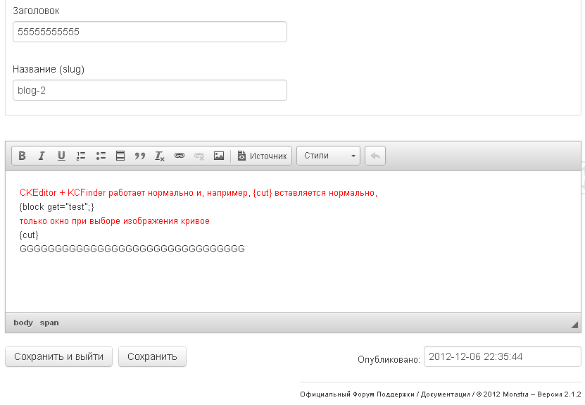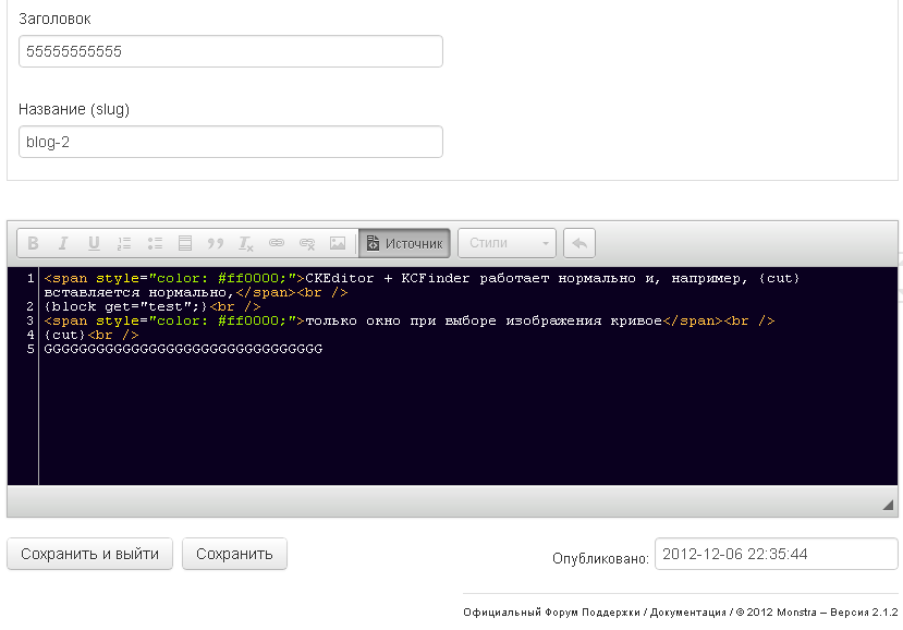Версия Монстры 212 + CKEDITOR (timestamp:"CAPD",version:"4.0",revision:"769d96134b")