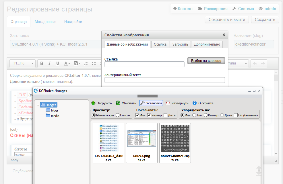 Тема - CKEditor + KCFinder, а наворотили.... кто куда.  http://www.kolobok.us/smiles/standart/swoon.gif